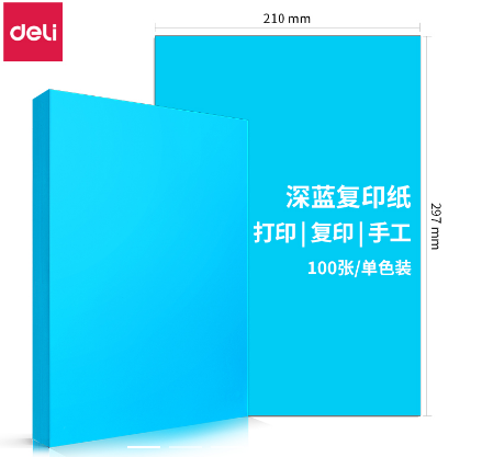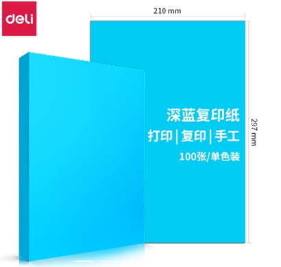 得力(deli)7758 彩色复印纸 A4-80g-100张/包 (蓝)