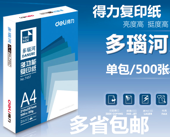 得力(deli) 7441 多瑙河复印纸 A4/70g/5包/箱 (单位:箱)