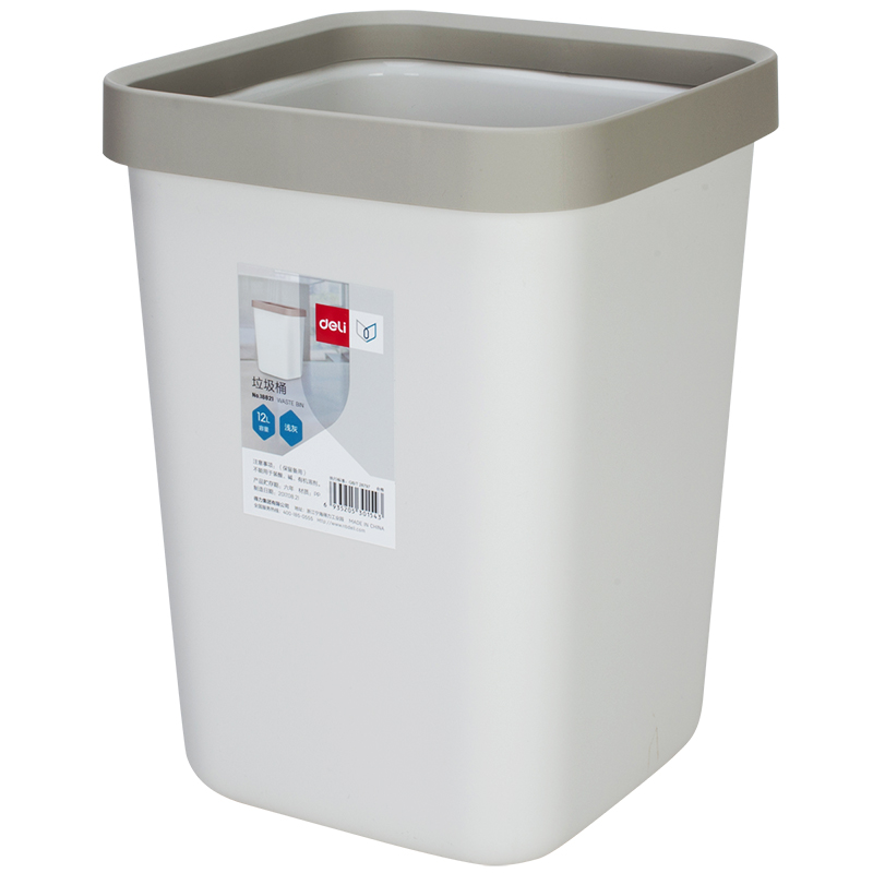 得力(deli)18821垃圾桶(浅灰)12L方形敞口