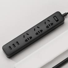 小米 (MI) 17544 黑色 插线板 三位+3USB 多功能1.8米插座插排排插接线板 支持2A快充 3重安全保护