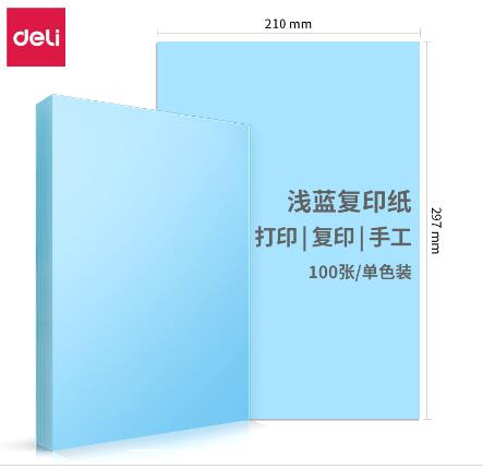 得力7757彩色复印纸-A4-80g-25包(浅蓝)(包)