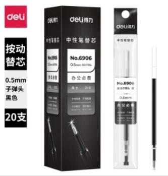 得力6906中性笔芯0.5mm弹簧头(黑)(20支/盒)(盒)