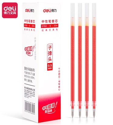 得力S760子弹头中性笔芯0.5mm(红) 20支/盒