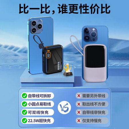 20000毫安时充电宝自带线22.5W移动电源 迷你小巧大容量 钢琴黑 |