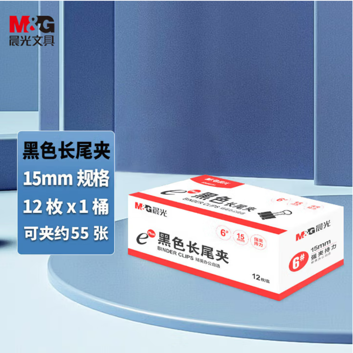 晨光(M&G)6#15mm12只/盒黑色长尾夹小号ABS92731