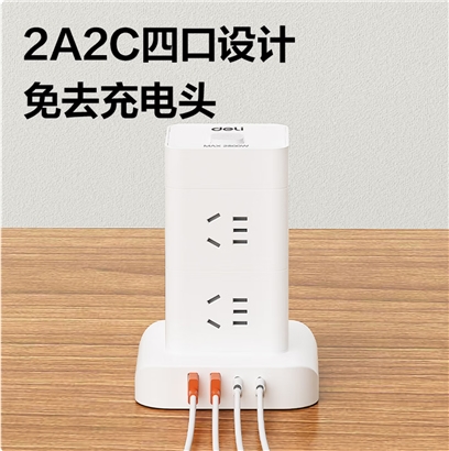 得力(deli)立式插座 总控8位+2USB+2TYPE-C全长1.8米 过载保护 LU5052