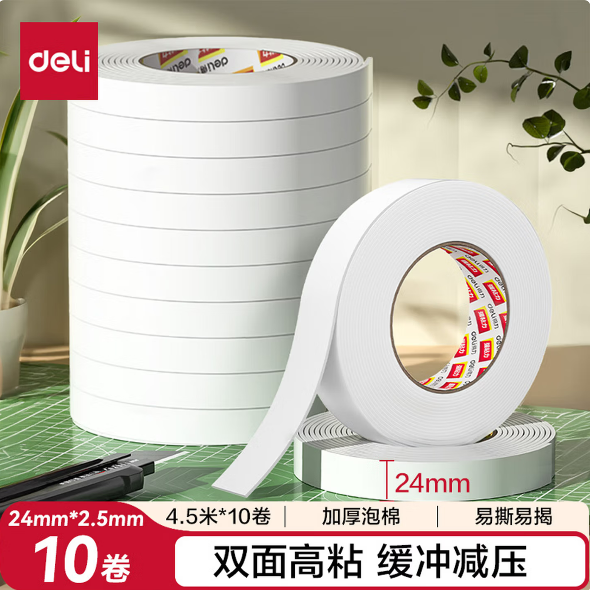 得力(deli)高粘EVA泡棉双面胶带 24mm*5y*2.5mm加厚