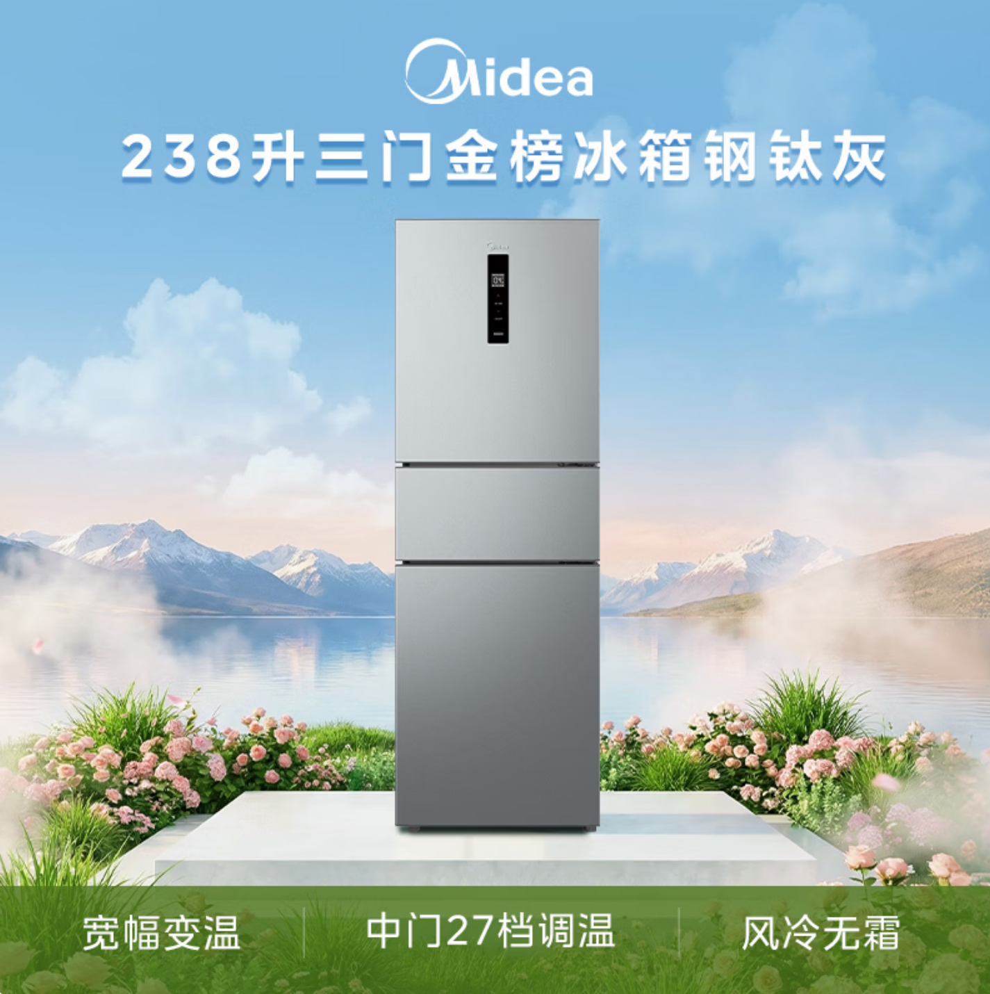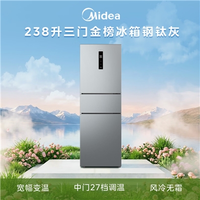 美的(Midea)238升三门冰箱灰色小型风冷家用变频一级能效宿舍租房以旧换新小冰箱MR-249WTPE