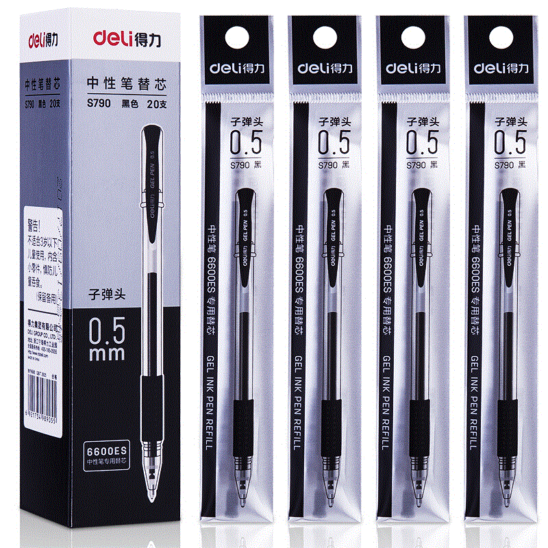 得力S790中性笔替芯0.5mm子弹头(黑)