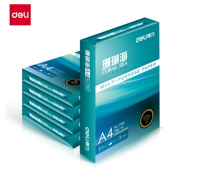 | 得力(DeLi)珊瑚海复印纸7361 A4 70G 500页/包 单包 5包/8包/箱(整箱起售) |