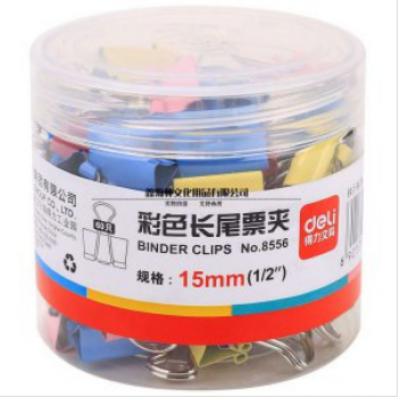 得力 8556 彩色长尾夹 15mm 60只/筒