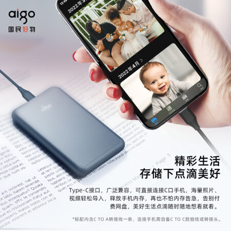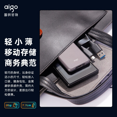 爱国者(aigo)500GB USB 3.2 移动固态硬盘 (PSSD) S7 读速高达520MB/s 轻薄抗震 |