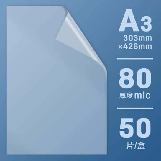 得力3896塑封膜(透明白)(50张/盒) 过塑机塑封机膜 过塑膜 高透塑封膜 照片 文件 菜单过塑保护膜 80mic护卡膜A3
