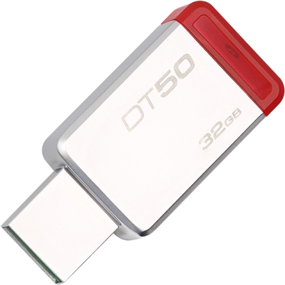 金士顿(Kingston)32GB USB3.1 U盘 DT50 红色 金属外壳 无盖设计