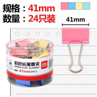 得力(deli)8552 彩色长尾票夹 41mm 24只/筒