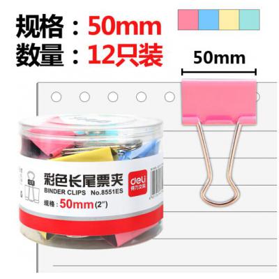 得力(deli)8551 彩色长尾票夹 50mm 12只/筒