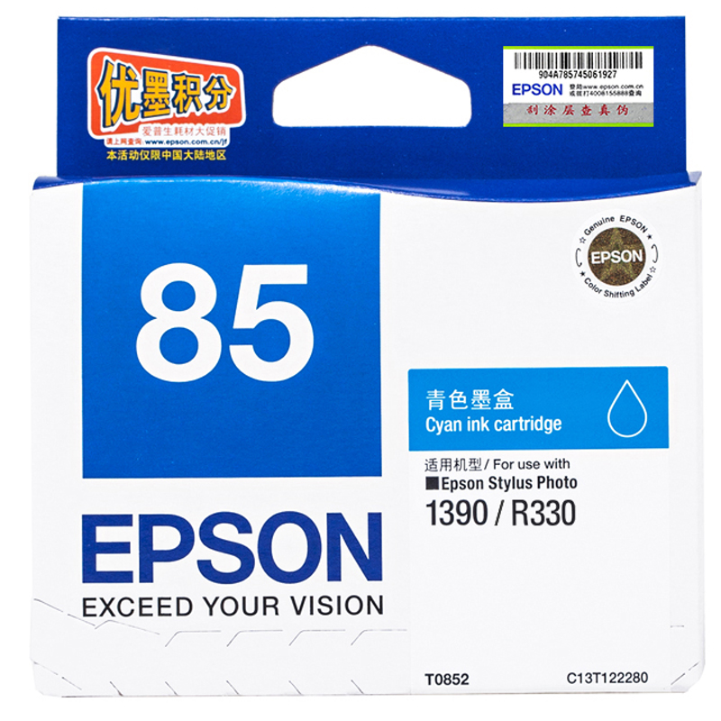 爱普生(EPSON)T0852(C13T122280) 青色墨盒 (适用于:Stylus Photo1390;R330)