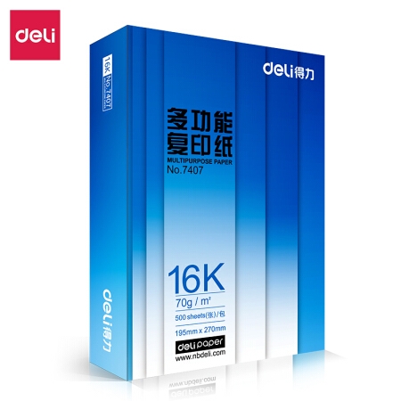 得力(deli)16K 70g 500页/包/7408莱茵河复印纸 8包/箱