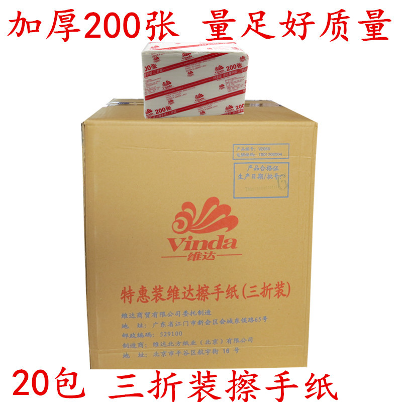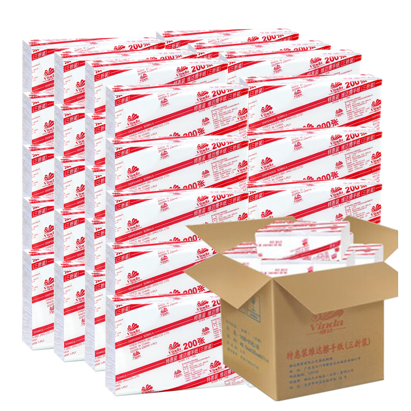 维达擦手纸200抽张20包/箱抽纸酒店商用抹手纸抽取式卫生纸厨房用纸商务三折手纸巾VS2060