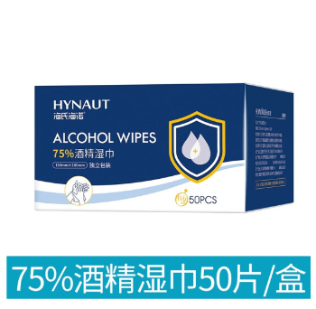 海氏海诺 75%酒精湿巾 一次性消毒酒精棉片大号 单片独立包装 18*15cm*50片 便携小包装免洗洗手消毒液湿巾 |
