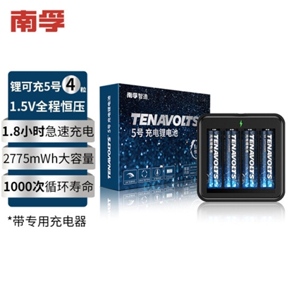 南孚(NANFU)5号充电锂电池4粒套装 充电电池 1.5V恒压快充 TENAVOLTS 适用游戏手柄/吸奶器/鼠标等 AA五号 |