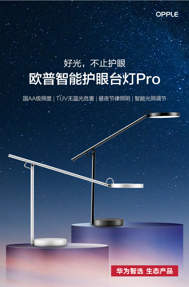华为智选智能护眼台灯国AA级护眼防蓝光匀亮光自动调光读写阅读台灯欧普台灯Pro-皓月银 |