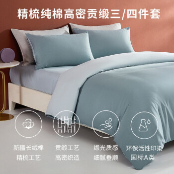 A类新疆长绒棉缎纹三件套纯棉被套 单人被 1.2米床【150*200cm 】 海茵蓝色/雅士灰(下单请备注颜色)