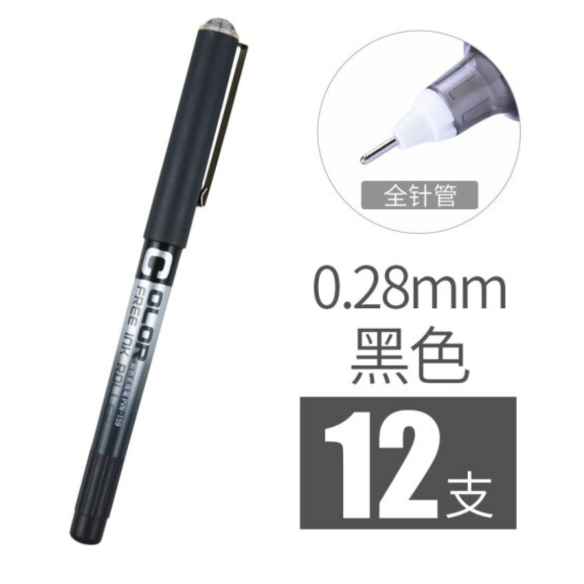白雪(snowhite)PVN-159直液式走珠笔 0.38mm黑色 速干彩色中性笔全针管签字笔水笔手账多色笔12支/盒