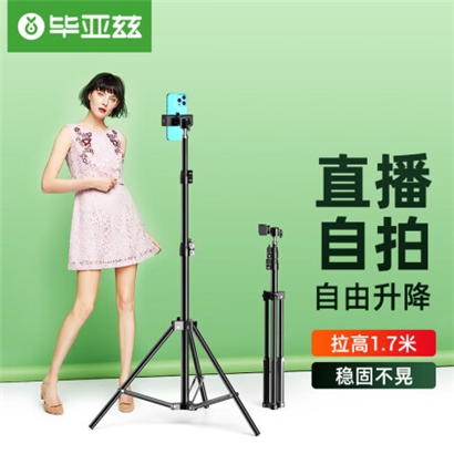 毕亚兹【1.7米】手机支架落地直播三脚架 自拍杆录像网红主播站立式 桌面便携户外伸缩折叠固定三角支撑架B43 |