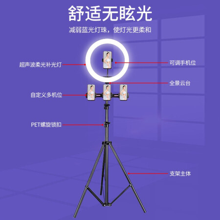 KOOLIFE 手机直播支架落地 美颜补光灯三脚架子固定 网红主播摄影拍照视频抖音自拍杆设备神器