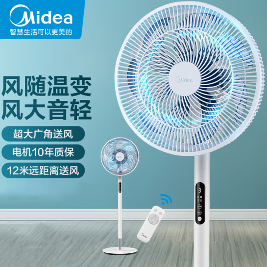 美的(Midea)七叶柔风大风量电风扇家用智能风随温变落地扇轻音节能立式 SAD35EA |