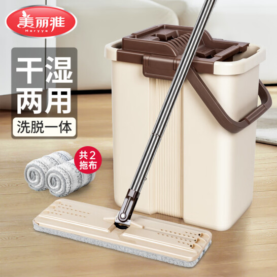 美丽雅拖把免手洗平板拖把懒人拖地神器家用省力刮刮桶墩布吸水 共2拖布 |