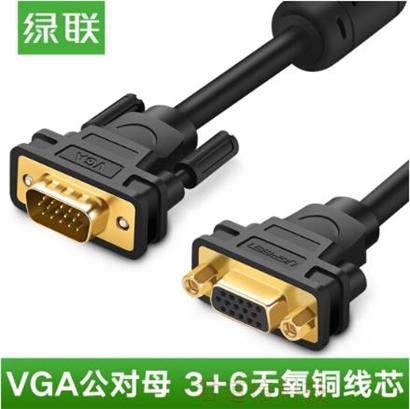 | 绿联 VGA延长线公对母3+6 工程级VGA高清连接线 电脑显示器电视投影仪视频加长转接线 母头螺母 1米 30742 | |||