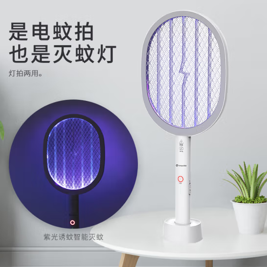 榄菊 电蚊拍充电式灭蚊拍紫光诱蚊灭蚊灯带底座灭蚊器蚊子拍电苍蝇拍 灯拍两用 |