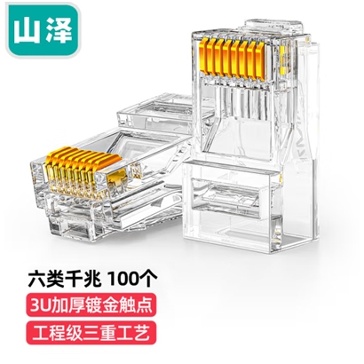 山泽(SAMZHE)六类网络水晶头 6类RJ45网络水晶头 8P8C电脑网线接头 Cat6水晶头 100个WL-6100 |