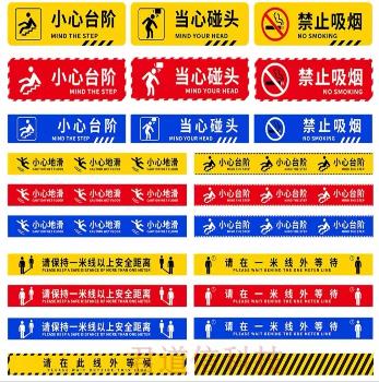 警示贴 小心地滑/台阶/禁止吸烟/一米线地贴 墙贴 等候间隔贴 防水 防滑 耐磨