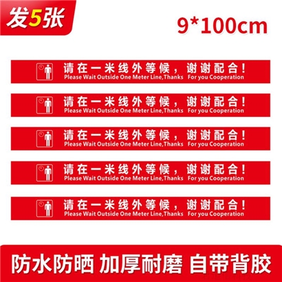 鸣固 一米线地贴防滑耐磨 地标车站排队等候安全标识 加厚红 9cm×100cm(5条装) |