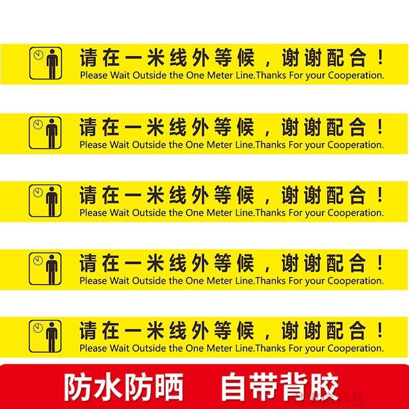 一米线地贴防滑耐磨 地标车站排队等候安全标识(黄)9cm*70cm(五条装) |