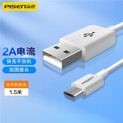 品胜(PISEN)安卓数据线 1.5米 Micro USB手机充电线 适用于华为/小米/vivo//oppo/荣耀/红米/魅族 白色
