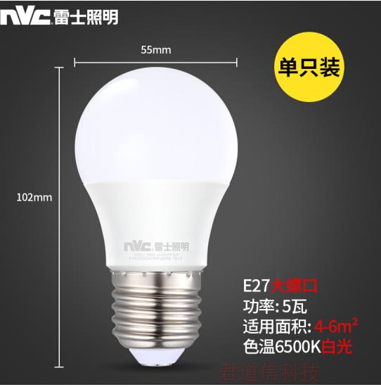 雷士(NVC)LED灯泡球泡 5瓦E27大螺口 家用商用大功率光源节能灯 白光6500K |