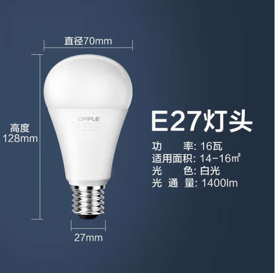 欧普照明OPPLE led灯泡球泡 高亮球泡灯泡照明节能灯 16W【E27大灯头】球泡 白光 |
