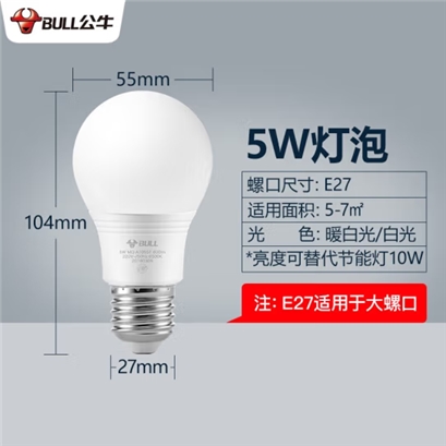 公牛(BULL)LED节能e27螺口灯泡 护眼台灯超亮球泡 5W 白光 |
