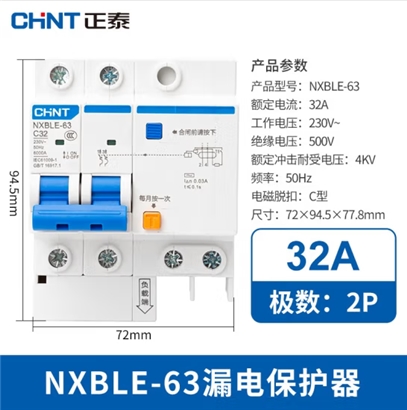正泰(CHNT)NXBLE-63-2P-C32 小型漏电保护断路器 漏保空气开关 |