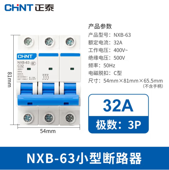 正泰(CHNT)NXB-63-3P-C32 家用空气开关 过载空气开关 DZ47升级款小型断路器 3P 32A |