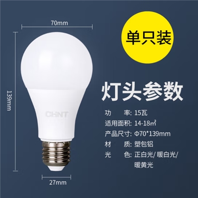 正泰(CHNT)LED灯泡节能灯泡 15W 6500K 白色/暖色 大螺口家用商用大功率光源25E |