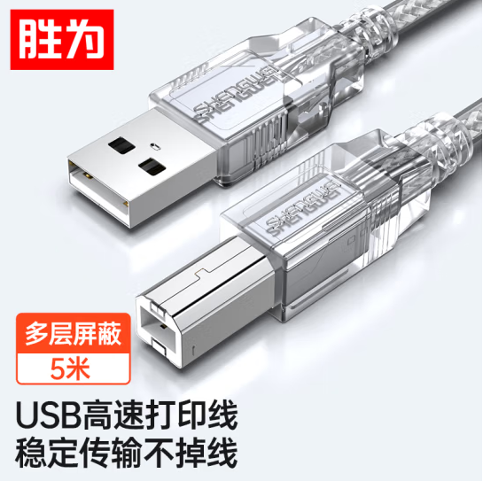 胜为(shengwei)usb2.0方口打印机数据线 电源连接线纯铜双屏蔽 佳能爱普生惠普打印机连接线5米 UC-1050