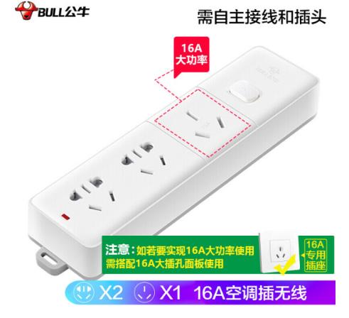 公牛(BULL)大功率电器16A空调插座/插线板/插排/排插/接线板 3位无线总控GN-406D(需自行接线和插头)