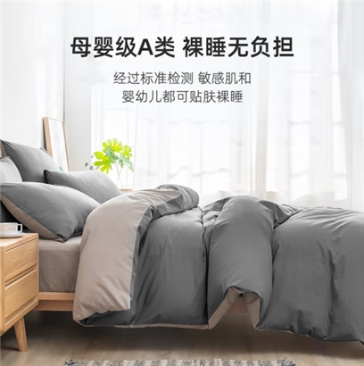 四件套纯棉 A类全棉水洗棉床上四件套无印风套件单双人床单被套床上用品 灰+浅咖 1.5/1.8米床通用(灰/蓝/绿/浅咖)颜色备注