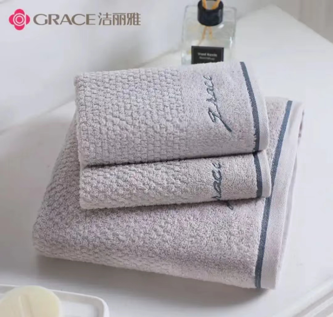 洁丽雅 Grace 浴巾家用纯棉1浴巾+2毛巾 组合装 成人男女柔软吸水全棉大号毛巾浴巾裹巾 灰色 |