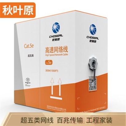 秋叶原(CHOSEAL)原装超五类网线【工程版0.5±0.01mm】CAT5e纯铜线芯 非屏蔽网络线灰色305米 QS2608AT305S |